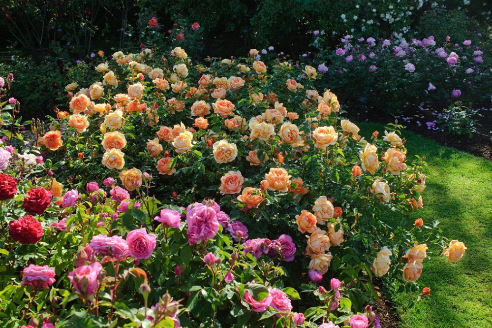 Роза кустарниковая Леди оф Шалотт (Rose Lady of Shalott), Д.Остин - Бутоны ярко-оранжево-красные. Каждый лепесток лососево-розовый с красиво контрастирующей золотисто-желтой изнанкой, а в сердце цветка играют более глубокие тона. Аромат теплый, насыщенный, чайный с оттенками яблок и гвоздики.