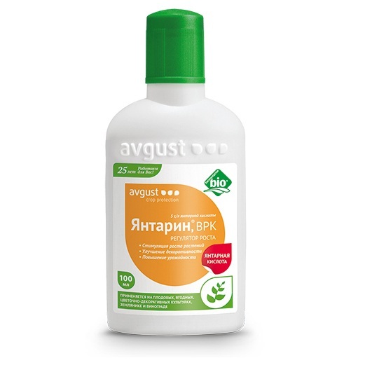 Янтарин — природный регулятор роста для ягодных, плодовых, овощных, цветочных и декоративных культур. Для применения в личных подсобных хозяйствах. Обладает антистрессовым эффектом, оказывая положительное действие на растения в условиях засухи, жары, заморозок, излишней влажности. Повышает устойчивость растений к поражению болезнями.Нормализует микрофлору почвы, предохраняет от излишнего накопления нитратов в растениях. Активизирует ростовые процессы, ускоряет сроки цветения, созревания, повышает урожайность.
